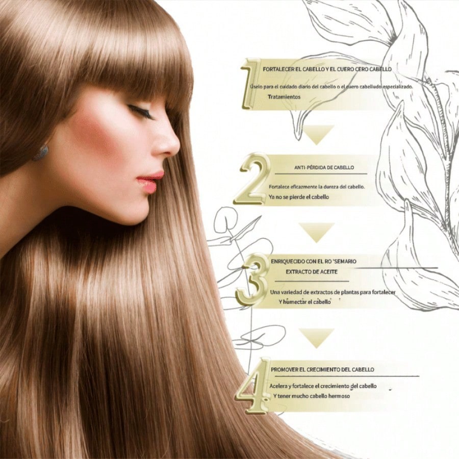 Aceite capilar con extracto de romero que nutre el cuero cabelludo y fortalece el cabello desde la raíz. Ideal para promover un cabello más saludable.