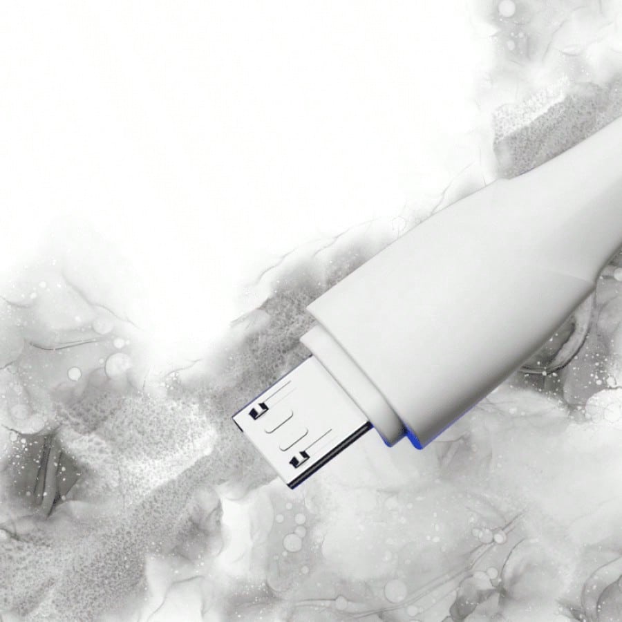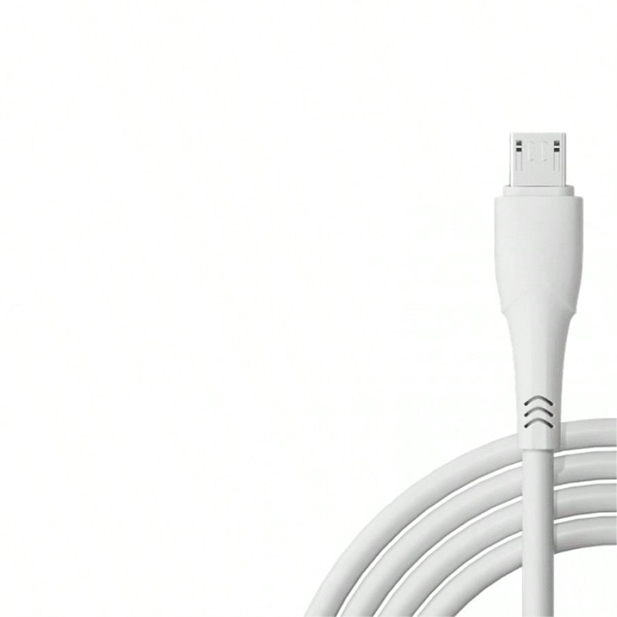 Cabezal de carga con cable V8 integrado de 15W en blanco. Ofrece un diseño específico para una carga estable y eficiente, manteniendo un estilo discreto y funcional para el uso cotidiano.