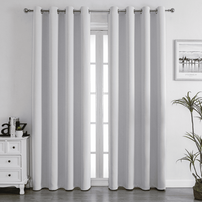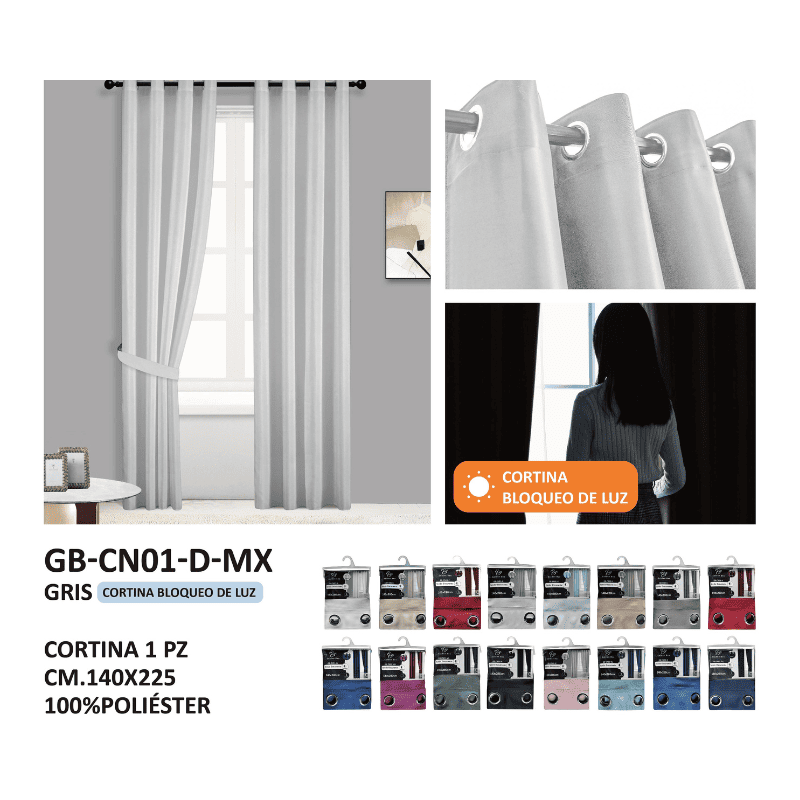 Cortinas grises modernas con sistema de ollaos para fácil colocación. Color versátil que se adapta a diversos estilos decorativos, ofreciendo privacidad y control de iluminación con un look urbano y actual para tu hogar.