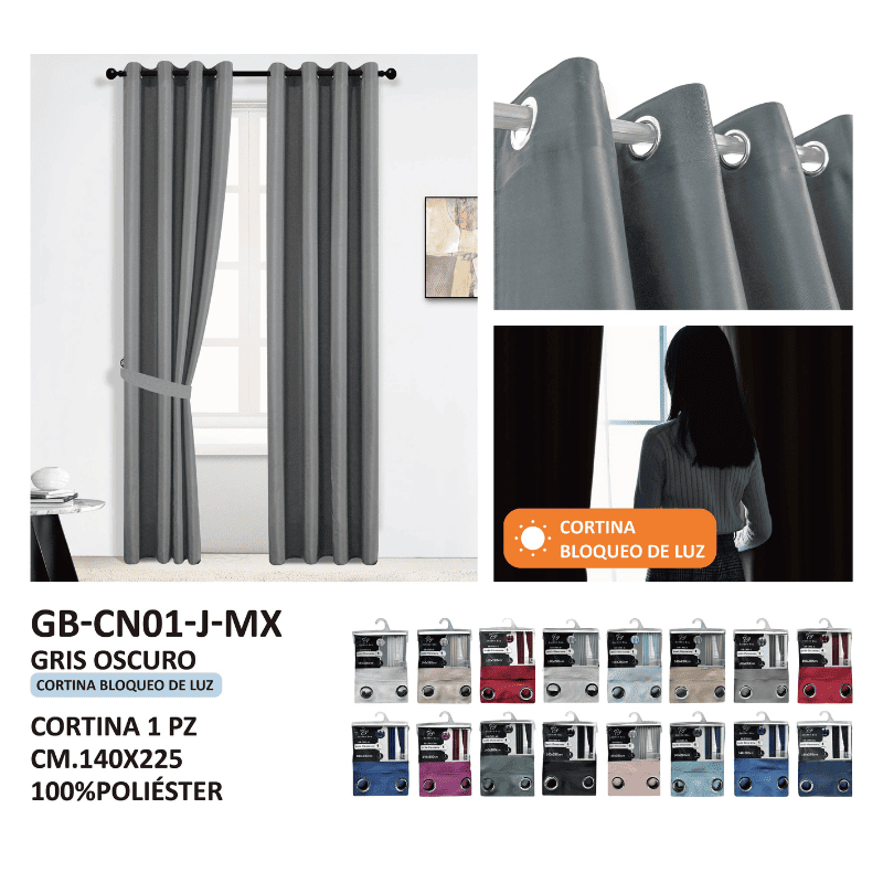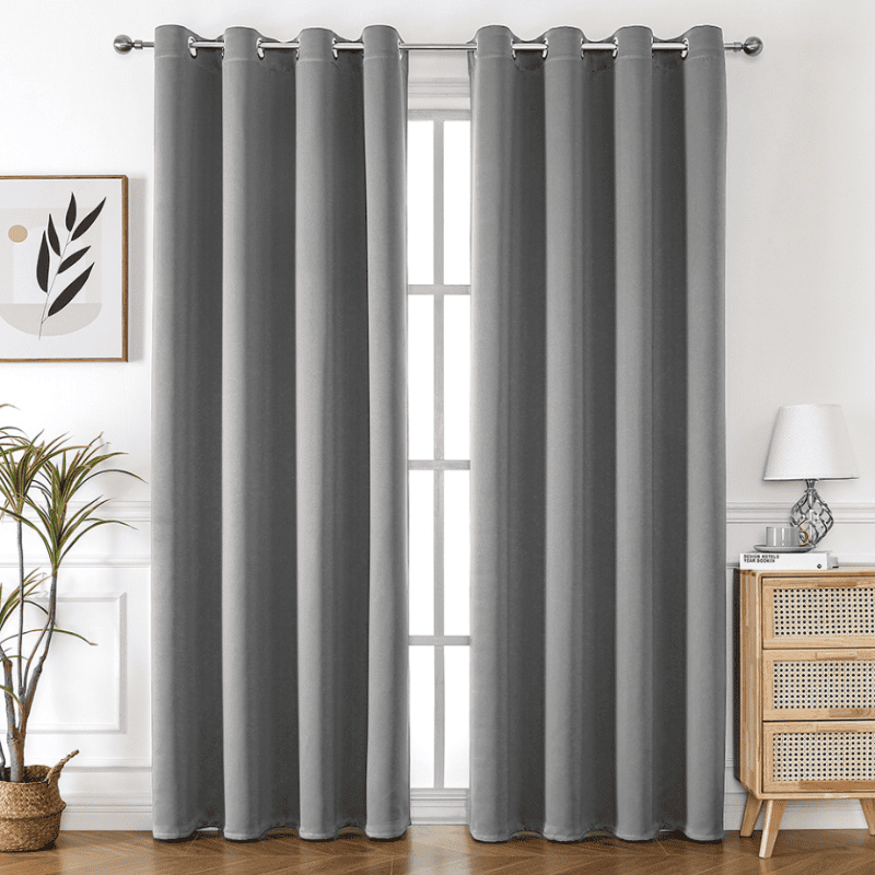 Juego de cortinas gris rata con diseño contemporáneo y ollaos para barra. Tonos terrosos que añaden sofisticación moderna a la decoración, ofreciendo funcionalidad y estilo para diferentes ambientes del hogar.
