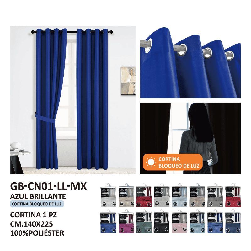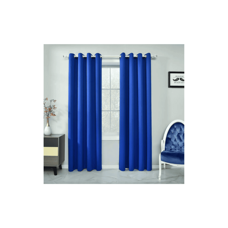 Juego de cortinas azul marino con diseño moderno y ollaos para barra. Color profundo y elegante que añade sofisticación a la decoración, proporcionando privacidad y control lumínico con un estilo contemporáneo y atemporal.