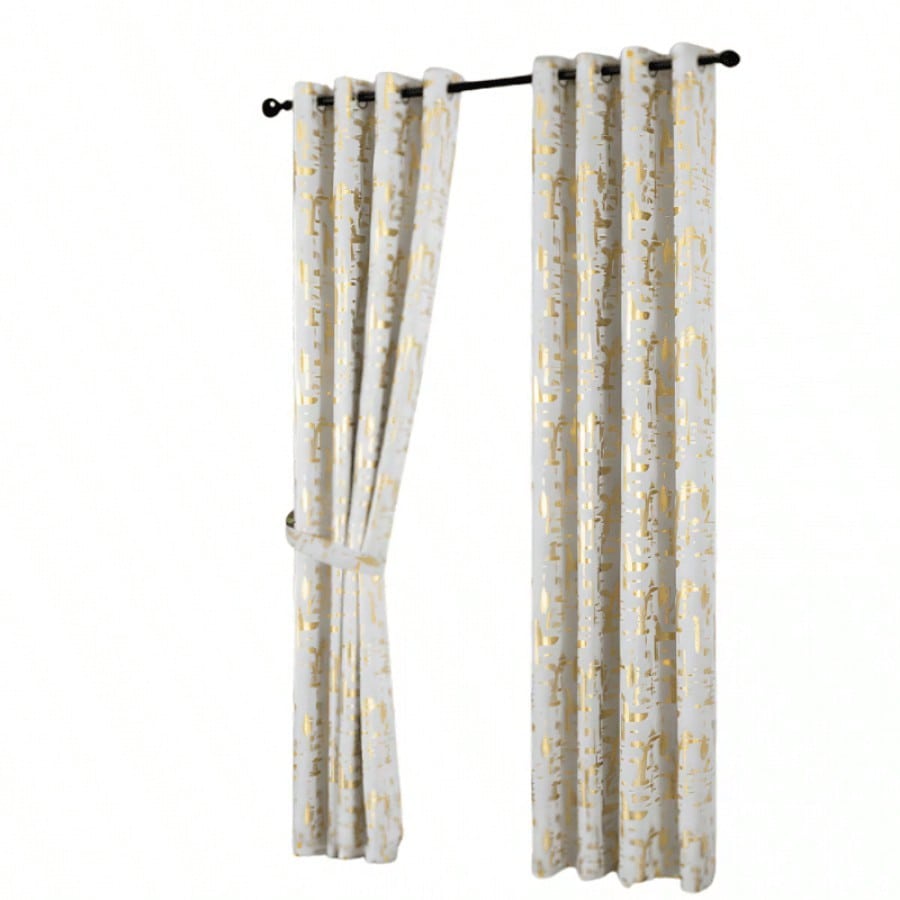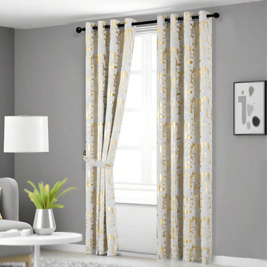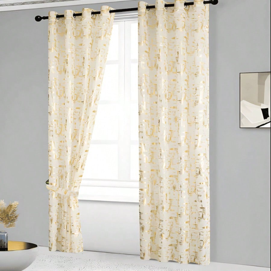 Cortinas beige con ollaos para barra. Color neutral y versátil que se adapta a cualquier estilo decorativo, aportando calidez y regulando suavemente la luminosidad del espacio.