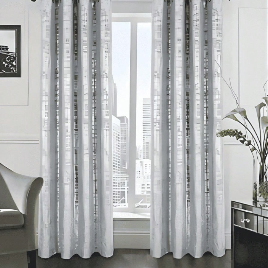 Cortinas grises con sistema de ollaos para barra. Tonos urbanos y contemporáneos que ofrecen privacidad y control lumínico, adaptándose a múltiples estilos de decoración interior.