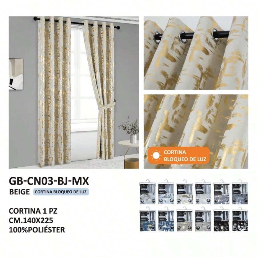 Cortinas beige con diseño moderno y ollaos para barra. Color cálido y neutral que combina elegancia y funcionalidad, regulando la entrada de luz para crear ambientes acogedores.