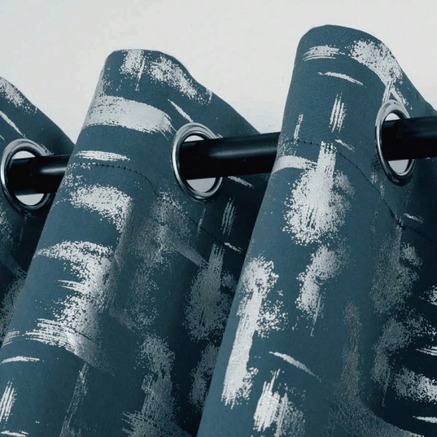 Cortinas verdes con elegantes detalles blancos y sistema de ollaos para barra. Combinación fresca que aporta naturalidad y contraste, regulando la luz natural para crear ambientes armónicos y llenos de vitalidad en tu espacio.