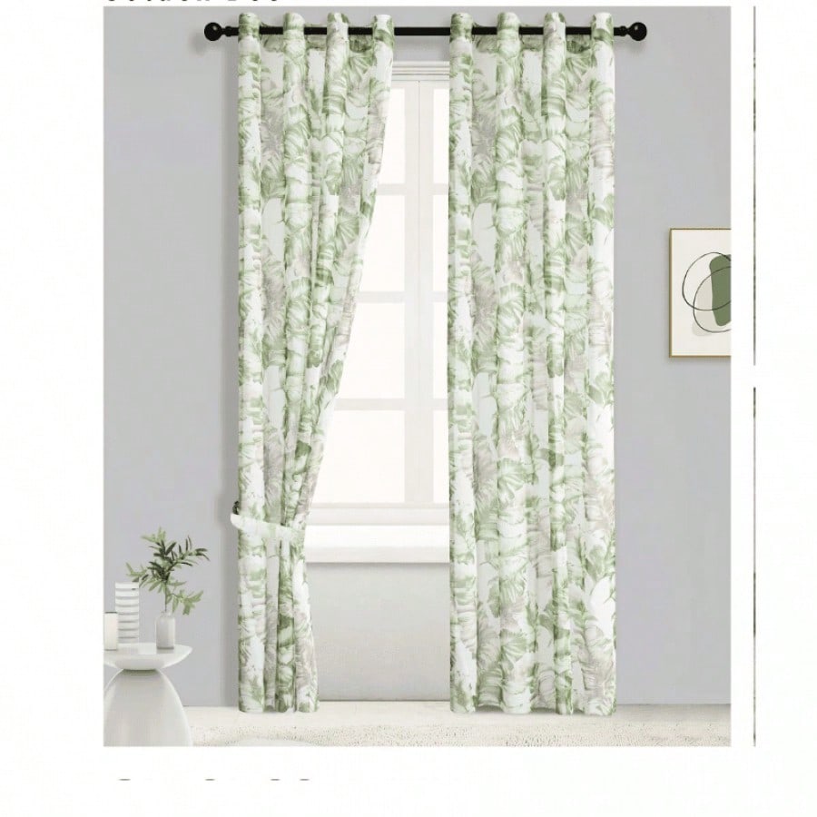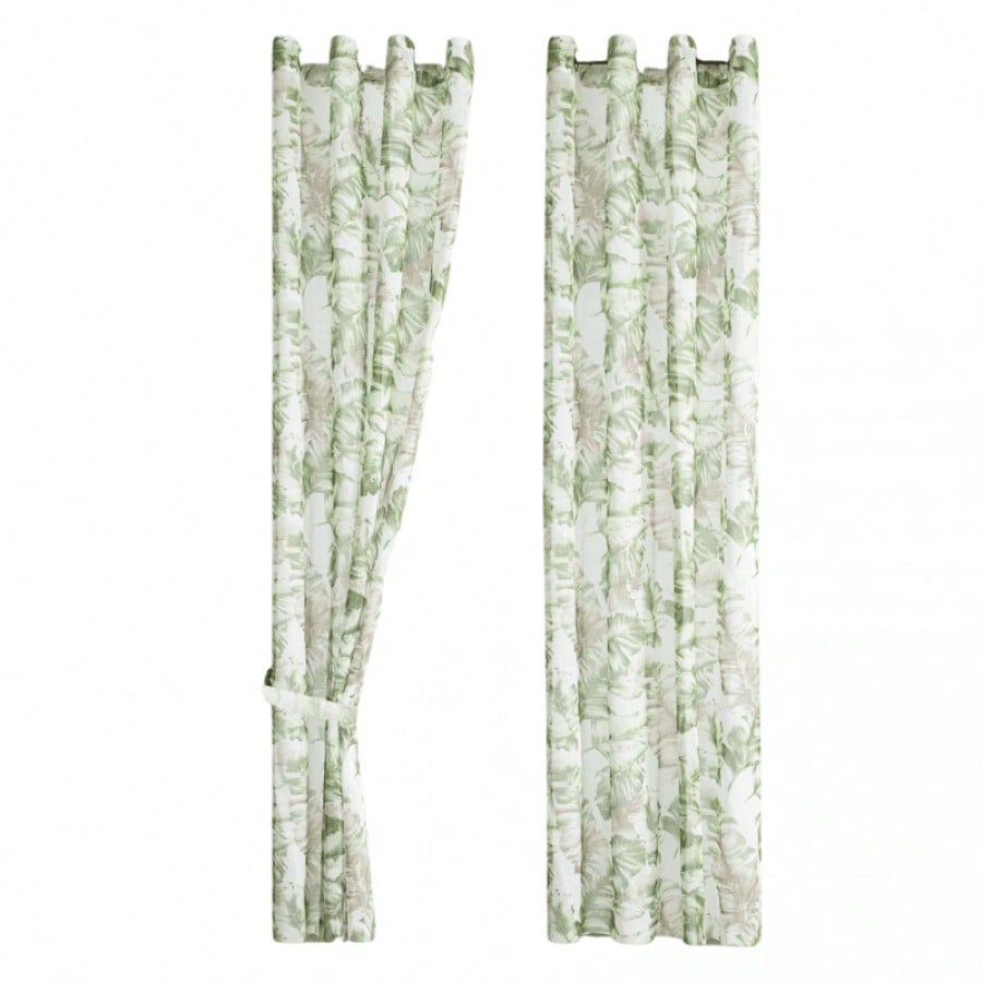 Juego de Cortinas Blancas con detalles verdes con Ollaos para Barra