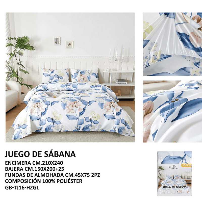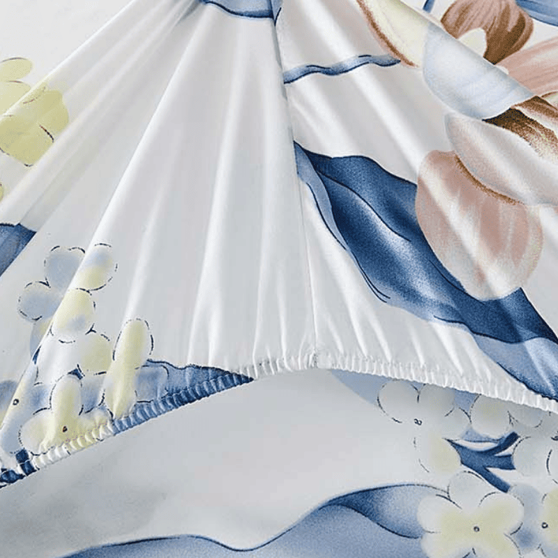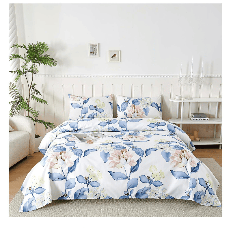 Funda nórdica con estampado floral azul. Tonos acuáticos que crean ambientes relajantes y armoniosos, ideal para dormitorios que buscan combinar elegancia y tranquilidad en su decoración nocturna.